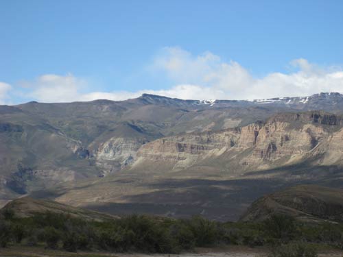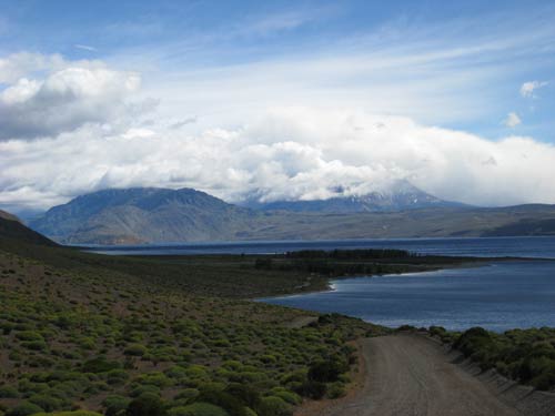 From Cueva de las Manos, it was back to the main Route 40, and then up another dirt road off Route 40 to get to Lago Posadas. We picked up a hitch-hiker - it was getting late, and he had been on the cross-roads when we had passed 4 hours earlier on our way to the Cueva de las Manos